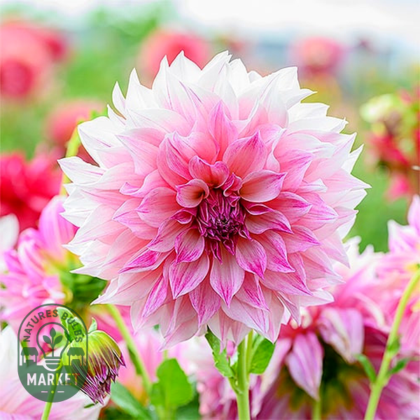 Dahlia is a genus of bushy, tuberous perennial plants native to Mexico and Central America. These popular garden flowers are prized for their spectacular blooms, which come in an extraordinary range of colors, sizes, and forms. Dahlia flowers can be as small as a coin or as large as dinner plates, with some varieties reaching over 12 inches across.