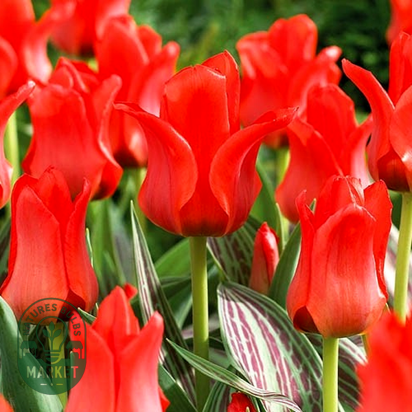 Tulips are iconic spring-blooming bulbs renowned for their elegant cup-shaped flowers and wide array of colors and forms. These bulbs produce single stems with distinctive flowers that can be found in virtually every color except true blue, including solid hues, bi-colors, and striking patterns with stripes, flames, or picotee edges.
