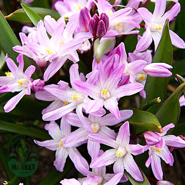 These charming flowers are native to the mountainous regions of Turkey, Cyprus, and Crete, where they naturally emerge from melting snowbanks in alpine meadows. Chionodoxa produces delicate, star-shaped flowers typically in shades of blue, pink, or white, often with distinctive white centers that create a striking contrast. The flowers grow on short stems above narrow, grass-like leaves.