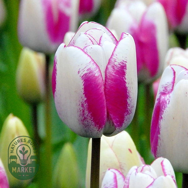 Tulips are iconic spring-blooming bulbs renowned for their elegant cup-shaped flowers and wide array of colors and forms. These bulbs produce single stems with distinctive flowers that can be found in virtually every color except true blue, including solid hues, bi-colors, and striking patterns with stripes, flames, or picotee edges.