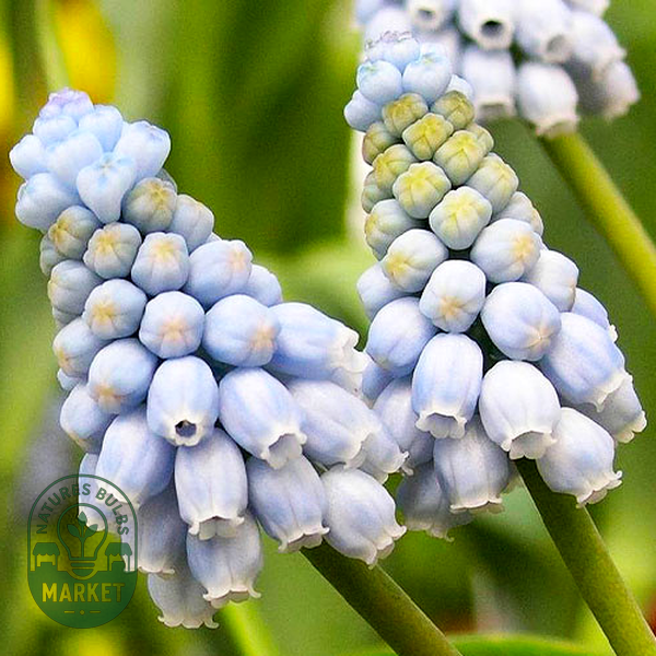 These charming spring flowers are native to the Mediterranean region and parts of Asia. They're characterized by their distinctive clusters of small, bell-shaped or urn-shaped flowers that resemble tiny grapes, hence the common name "grape hyacinth." The flowers typically come in shades of blue, purple, white, or yellow, and grow on short spikes above grass-like foliage.