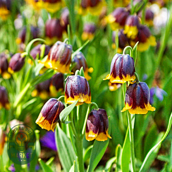 Fritillaria is a genus of bulbous flowering plants known for their distinctive drooping, bell-shaped flowers that often display intricate checkered or spotted patterns. The name comes from the Latin "fritillus," meaning dice box, referring to the checkered pattern resembling a Roman dice cup found on many species.