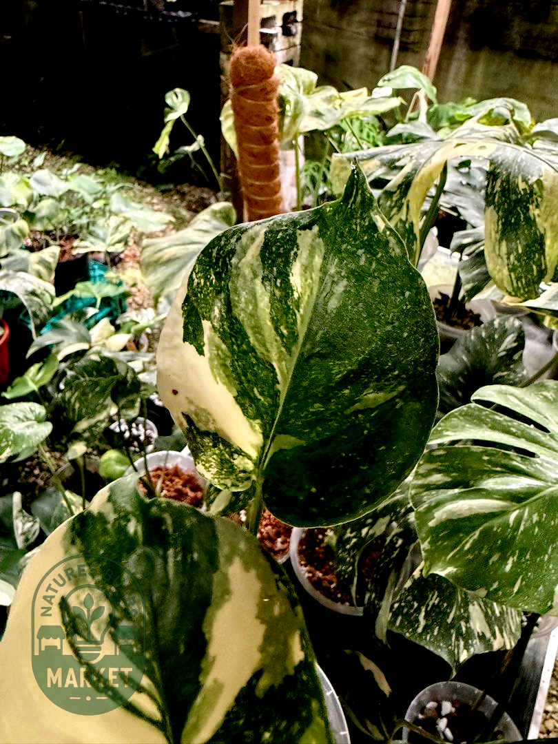 Light: Bright, indirect light is essential to maintain vibrant variegation and support large leaf development. Insufficient light causes smaller leaves and faded variegation.