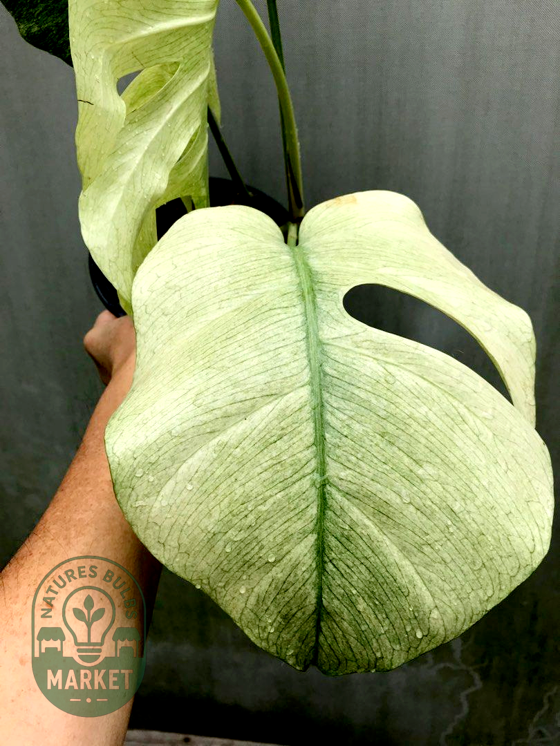 Light: Bright, indirect light is essential to maintain vibrant mint variegation and support large leaf development. Insufficient light causes fading and reversion to green.