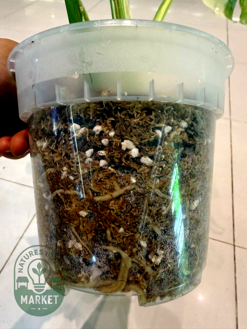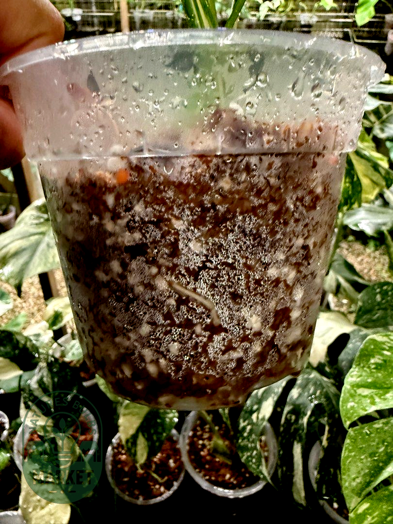 Soil: Well-draining aroid mix with generous orchid bark, perlite, and coco coir. Excellent aeration protects sensitive variegated tissue.