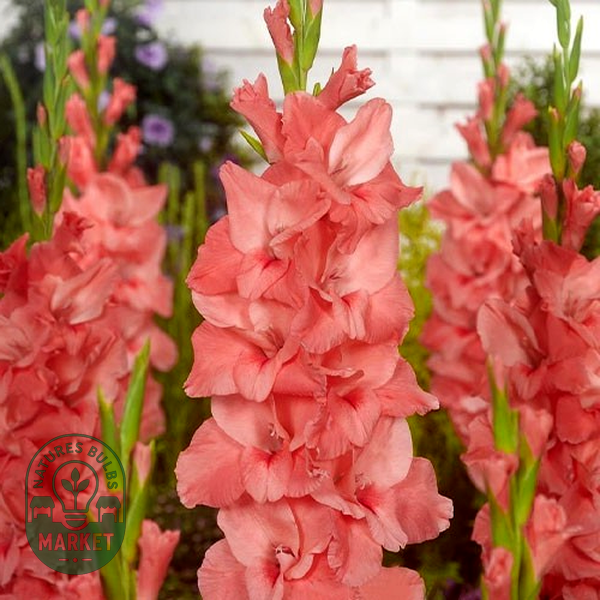 Gladiolus is a genus of perennial flowering plants that grow from corms (bulb-like underground storage organs) and are beloved for their tall, dramatic flower spikes. These striking plants produce sword-shaped leaves and towering stems that can reach 2-5 feet in height, topped with multiple funnel-shaped flowers arranged in dense, vertical clusters called racemes.