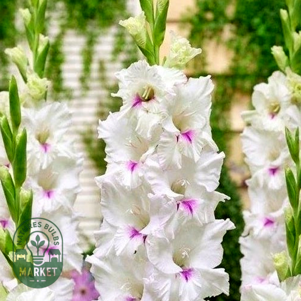 Gladiolus is a genus of perennial flowering plants that grow from corms (bulb-like underground storage organs) and are beloved for their tall, dramatic flower spikes. These striking plants produce sword-shaped leaves and towering stems that can reach 2-5 feet in height, topped with multiple funnel-shaped flowers arranged in dense, vertical clusters called racemes.