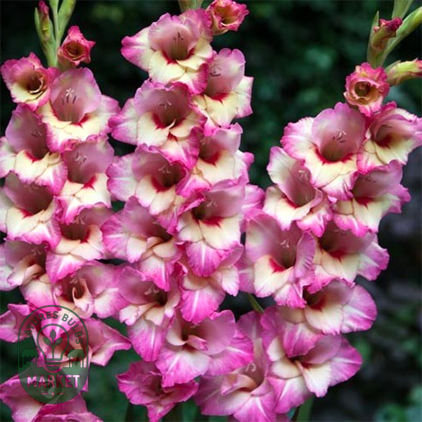 Gladiolus is a genus of perennial flowering plants that grow from corms (bulb-like underground storage organs) and are beloved for their tall, dramatic flower spikes. These striking plants produce sword-shaped leaves and towering stems that can reach 2-5 feet in height, topped with multiple funnel-shaped flowers arranged in dense, vertical clusters called racemes.