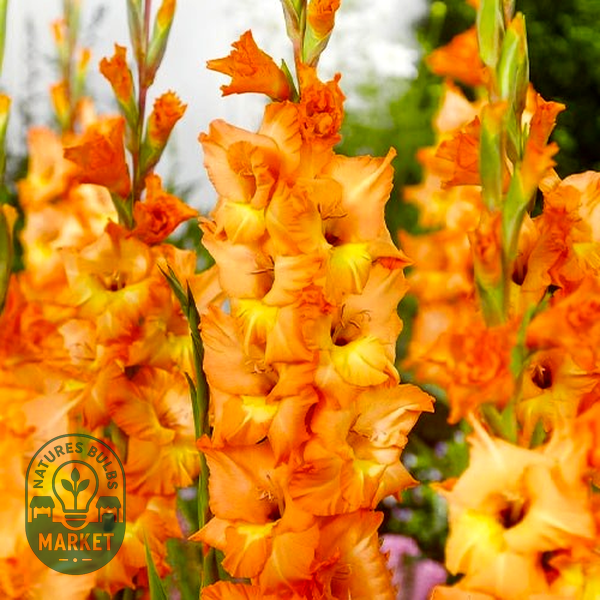 Gladiolus is a genus of perennial flowering plants that grow from corms (bulb-like underground storage organs) and are beloved for their tall, dramatic flower spikes. These striking plants produce sword-shaped leaves and towering stems that can reach 2-5 feet in height, topped with multiple funnel-shaped flowers arranged in dense, vertical clusters called racemes.