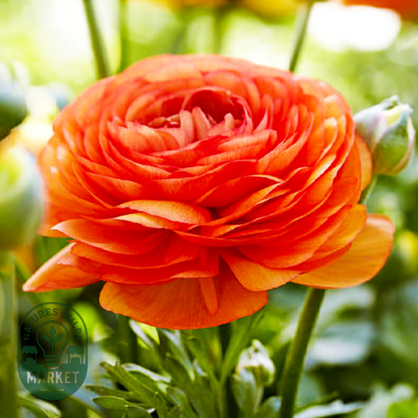 In cultivation, the Persian buttercup (Ranunculus asiaticus) has been developed into spectacular garden flowers with densely layered, papery petals that create full, rose-like blooms in vibrant colors including pink, red, orange, yellow, and white. These cultivated varieties are popular in wedding bouquets and floral arrangements for their romantic, ruffled appearance and long-lasting blooms.