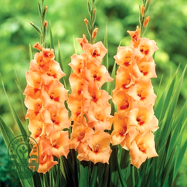 Gladiolus is a genus of perennial flowering plants that grow from corms (bulb-like underground storage organs) and are beloved for their tall, dramatic flower spikes. These striking plants produce sword-shaped leaves and towering stems that can reach 2-5 feet in height, topped with multiple funnel-shaped flowers arranged in dense, vertical clusters called racemes.