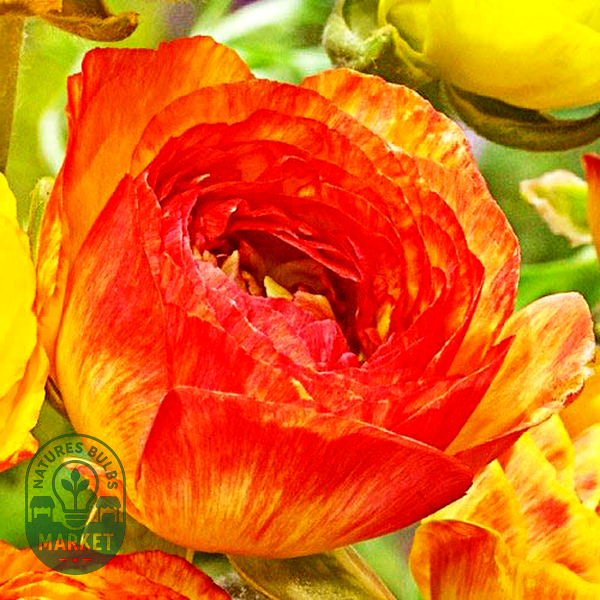 In cultivation, the Persian buttercup (Ranunculus asiaticus) has been developed into spectacular garden flowers with densely layered, papery petals that create full, rose-like blooms in vibrant colors including pink, red, orange, yellow, and white. These cultivated varieties are popular in wedding bouquets and floral arrangements for their romantic, ruffled appearance and long-lasting blooms.