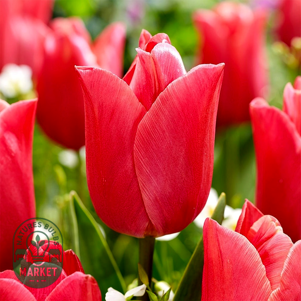 Tulips are iconic spring-blooming bulbs renowned for their elegant cup-shaped flowers and wide array of colors and forms. These bulbs produce single stems with distinctive flowers that can be found in virtually every color except true blue, including solid hues, bi-colors, and striking patterns with stripes, flames, or picotee edges.