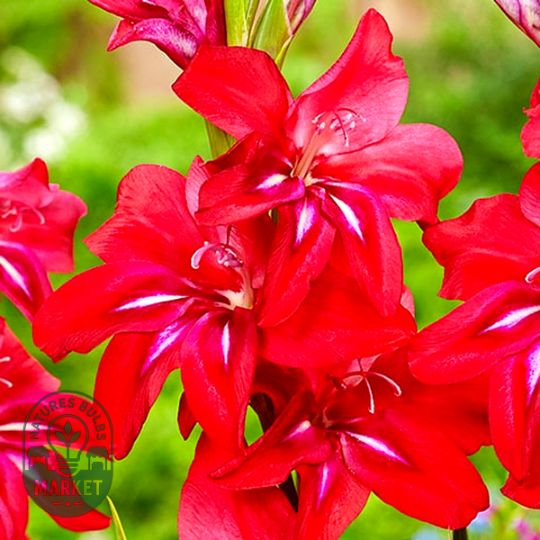 Gladiolus is a genus of perennial flowering plants that grow from corms (bulb-like underground storage organs) and are beloved for their tall, dramatic flower spikes. These striking plants produce sword-shaped leaves and towering stems that can reach 2-5 feet in height, topped with multiple funnel-shaped flowers arranged in dense, vertical clusters called racemes.