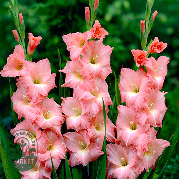 Gladiolus is a genus of perennial flowering plants that grow from corms (bulb-like underground storage organs) and are beloved for their tall, dramatic flower spikes. These striking plants produce sword-shaped leaves and towering stems that can reach 2-5 feet in height, topped with multiple funnel-shaped flowers arranged in dense, vertical clusters called racemes.
