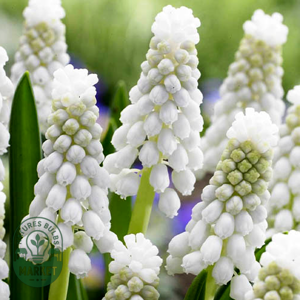These charming spring flowers are native to the Mediterranean region and parts of Asia. They're characterized by their distinctive clusters of small, bell-shaped or urn-shaped flowers that resemble tiny grapes, hence the common name "grape hyacinth." The flowers typically come in shades of blue, purple, white, or yellow, and grow on short spikes above grass-like foliage.