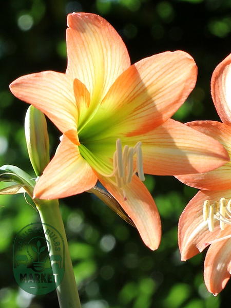 The plant grows from a large, rounded bulb that sends up a thick, hollow flower stalk called a scape, which can reach 12-24 inches tall. Each stalk typically bears 2-6 large, lily-like flowers that bloom in succession. The strap-shaped leaves are glossy green and usually emerge after or alongside the flowers, growing up to 18 inches long.