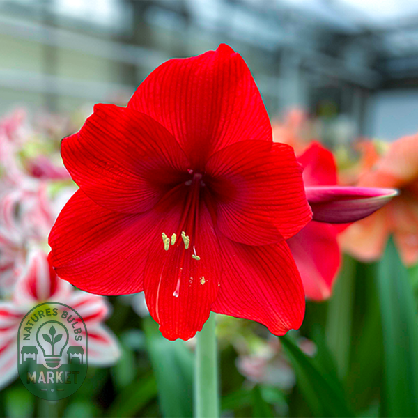 Amaryllis is a striking bulbous flowering plant best known for its large, trumpet-shaped blooms that make it a popular choice for indoor flowering during winter months. The most commonly cultivated species, Hippeastrum (often called amaryllis in horticulture), produces dramatic flowers that can reach 6-8 inches across, typically in shades of red, pink, white, orange, or striped combinations.